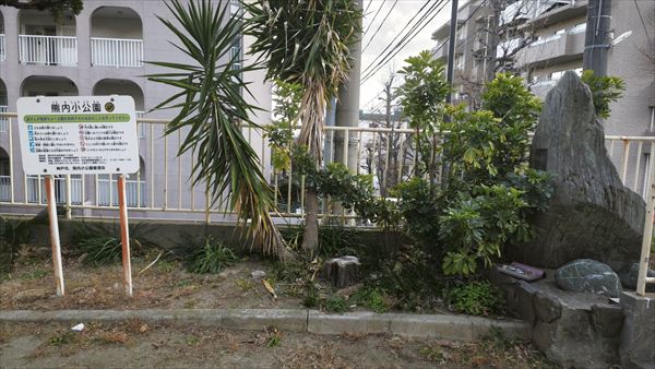 神戸の市街地で、生田川から住吉川までの最も北側(六甲山系に近い道)を東西に貫通する野崎線(山麓線)と、須磨から芦屋を経て武庫川を経て尼崎までを東西に貫通する山手幹線との間で、葺合中学校の北側のマンションに囲まれた神戸市の小さな公園の一角に、鉄格子に囲まれて石碑が設置されていました。