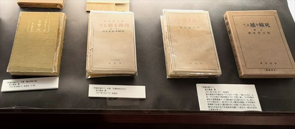 刊行当時の大正期から昭和初期の著作「死線を越えて」、刊行から1年で100万部超という当時としては大ベストセラーとなった自伝的小説が並んでいました。後に英語・ドイツ語・フランス語などに翻訳され世界的に知られたようです。