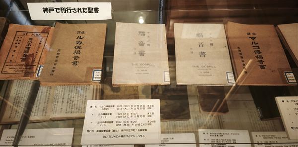 神戸バイブル・ハウスには賀川豊彦の配偶者・賀川ハルが印刷の女工の時に印刷された聖書が展示されています。