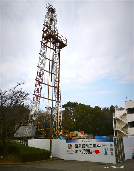 駐車場の一角で、温泉の掘削をしていました。地下1000mまで掘り下げるようです。温泉が湧いたら、徒歩圏内で温泉を愉しむことが出来るようになります。