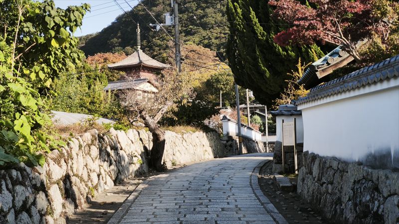 白壁に挟まれた石畳の風情のある道を進んだ先に太山寺があります。
