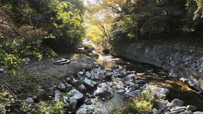 太山寺の奥の傍らを流れる伊川です。伊川は明石公園の北側を流れて、明石川と合流して、明石浦漁港と林崎漁港の間の河口で播磨灘へ。そして上流を遡ると、白川を経て、しあわせの村辺りに水源があるようです。