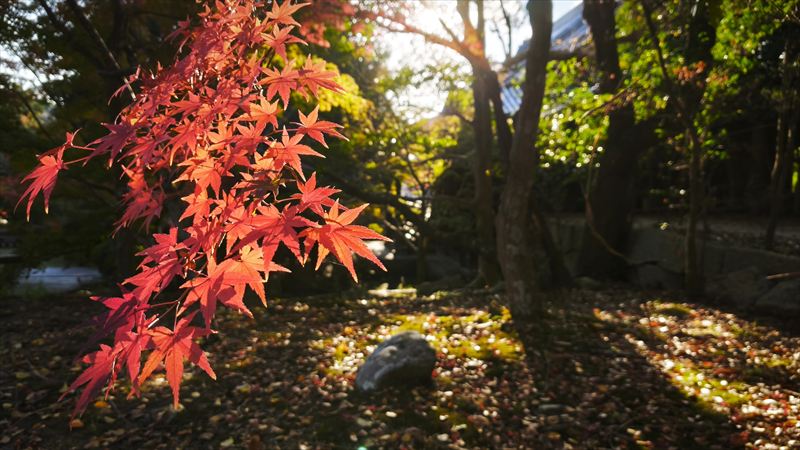 本堂の奥の羅漢堂の辺りは杜のようになっていますが、木々の合間から射し込んだ秋の陽光が、紅葉を輝かせている光景は、なんとなく幻想的でした。