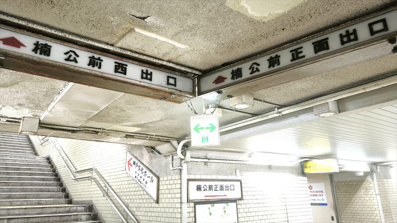 神戸駅の山手側(西口)の正面玄関付近は工事中なので国道28号線を地下を通ったのですが、湊川神社の出口の表示が、昭和チックなレトロな感じで「楠公前出口」と書かれています。湊川神社は、地元では楠公(なんこう)さんと呼ばれることが多いです。