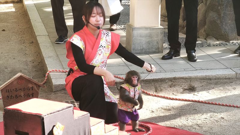 これまで東京・浅草の浅草寺の六区、それと栃木・足利で七夕のシーズンに足利織姫神社の参道のような北仲通りが縁日のような感じで、そこで猿回しを見たことがありますが、思うわぬ3回目・・・でした。