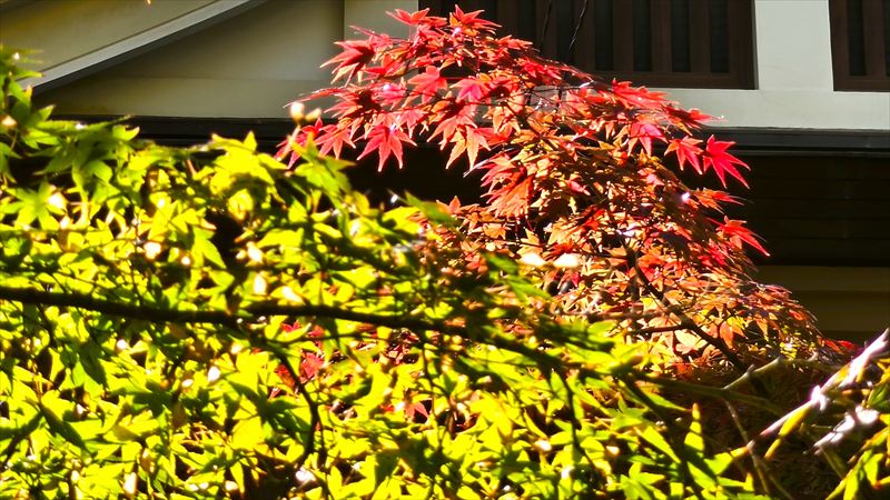 境内のモミジは、まだまだ青々したものが多いですが、一部は紅葉していました。