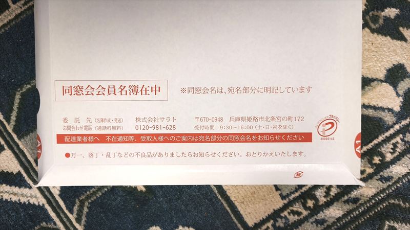 同窓会名簿が郵送されてきました。申し込んだのが今年のはじめだったと思います。
