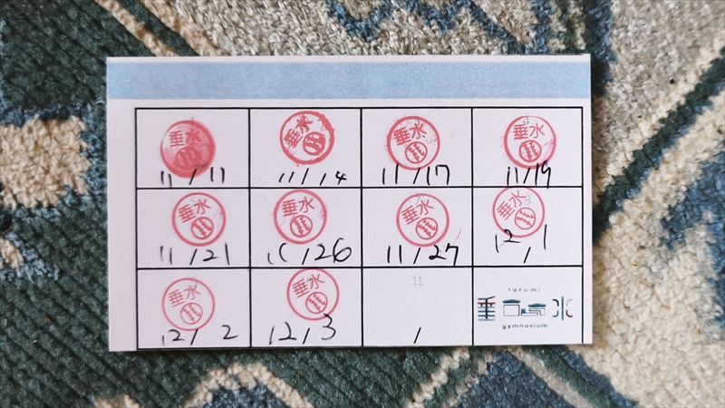 回数券が今日で11回目で回収となります。先週に回数券を忘れて1日券を使ったので、今日で12回目のトレーニングです。この1ヶ月ぐらいは、だいたい週3回のペースになっています。今週も3回を目標にしたいと思います。