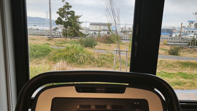 ランニングマシンからは、目の前に福田川の河口、その向こうに垂水漁港、そして明石海峡大橋と淡路の島影、少し明石海峡の海面を見ることが出来ます。ただ、軽くランニングした後に、ピッと膝の痛みを感じました。昨年夏はテニス肘となって1年以上掛かったので、無理をせずに今日は競歩20分だけにしました。
