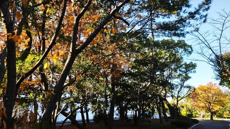 木漏れ日に枯葉が輝いて、コントラストが綺麗なのでレンズを向けました。冬型の気圧配置となって、日本海側は低い曇り空が広がり、冷たい雨やみぞれ、そして昨晩には大きな地震があった北日本では雪が降りしきっているようですが、今朝の神戸の空は、日本列島を挟んで雲一つない快晴、そして湿度が一気に下がったように思います。