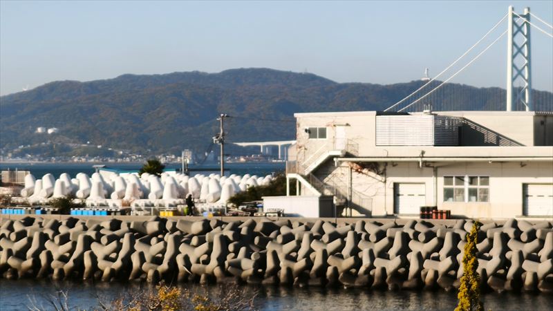 福田川の右岸河口に広がる垂水漁港の一角に、真新しいテトラポットが並んでいました。なお「テトラポッド」は登録商標で商品名ですが、「テトラポット」は類似した言葉ではありますが別の言葉と判断されるようです。もう20年以上前にaikoの歌の歌詞に「テトラポット」がありましたが、NHKでも、そのまま歌っていました。