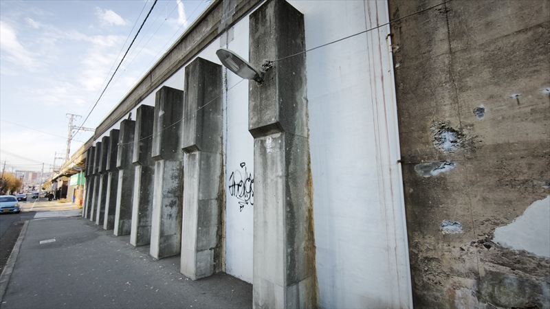 神鋼病院の斜向かい、JRの高架に、モアイ像のようなものがあります。久し振りにレンズを向けました。
