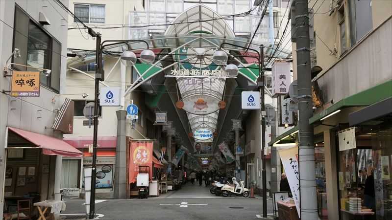 水道筋商店街の東の端、駅から遠くて、西の端に比べると、賑やかさがなく、アーケード街の幅も狭くなっていました。