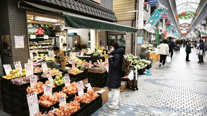 昔からあるような青果と果実のお店、平日の昼過ぎですが、結構人通りが多く、昔からの店が多いのは、湊川の東山商店街と、ここ水道筋商店街ぐらいでしょうか?垂水駅前の垂水センター街も賑やかですが、昔からの店は少なくなっていますし、規模はかなり小さくなっています。新長田の六間道商店街も昔ながらの店は減って、東側はアーケードも撤去されています。