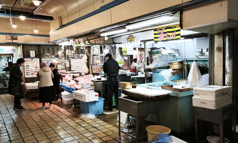 シャッターが閉まっている店が多い中、この鮮魚店は賑わっていました。