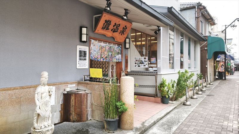 灘温泉、昔ながらの銭湯だったのが、20年ぶりぐらいに来ると、スーパー銭湯のような感じにリニューアルされています。水道筋商店街の東の入り口から少し離れていますが、この辺りまでは商店が並んでいます。この東側は住宅地で、そしてすぐに都賀川となっています。