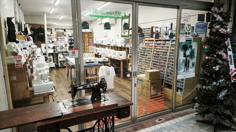 昭和時代には、彼方此方にあったミシンの専門店が、水道筋商店街では健全でした。店内はミシンと糸が処狭しと並んで、店頭には昭和時代のレトロなミシンが置いていました。
