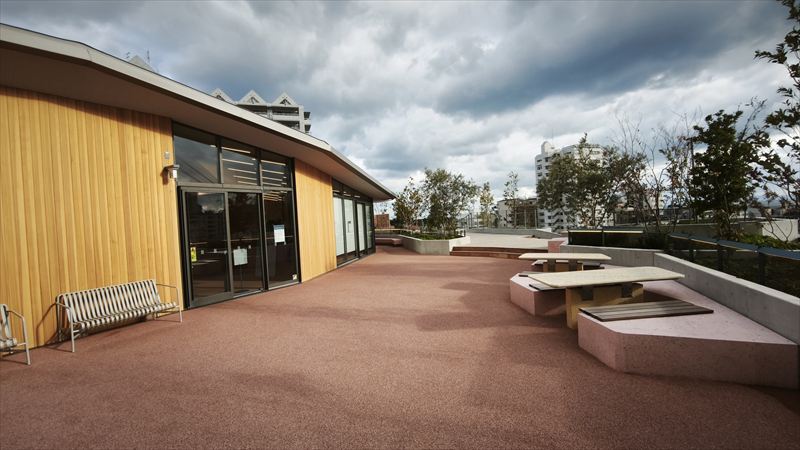 4階は屋上ひろばあり、結構広いスペースでした。明石海峡や大阪湾をビルの合間から眺めることが出来ます。
