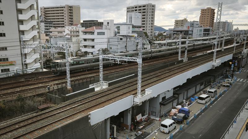 垂水駅が目の前で、複々線のJR神戸線と、山陽電車の線路が高架で並行しているのを目の当たりにすることが出来ました。