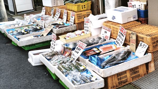 今朝が今年の初セリで、魚屋さんの店頭に鮮魚が並んでいました。