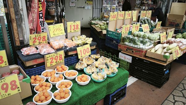 青果店の店頭も生鮮野菜や果物が並んでいました。