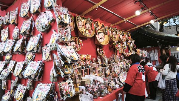 この露店では福簑が並んでいます。