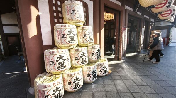 大きく「大黒」と書かれた酒樽が積まれて奉納されていました。「大黒正宗」という灘のお酒で、安福又四郎商店が蔵元だそうです。