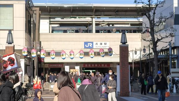 JR兵庫駅の南口を出ると、すぐに露店が並んでいます。これが柳原蛭子神社まで車両通行止めにして200mほど続きます。