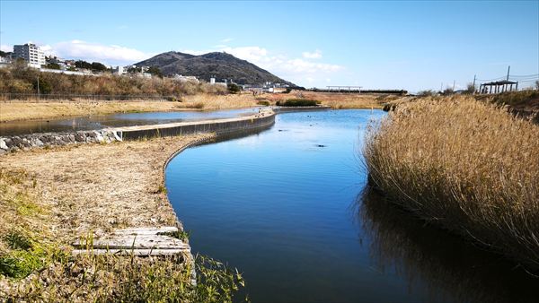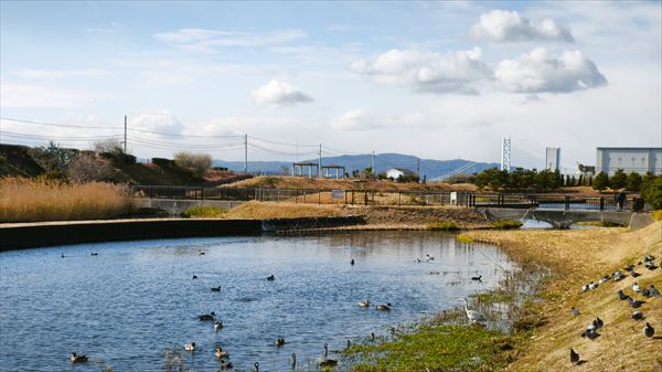 垂水の福田川左岸から塩屋近くまでの海岸を埋め立てた平磯緑地の東の端にある なぎさの池という人工池で、これは隣接する下水処理場の処理水を海に放流する前に、外気の温度と同じにするための機能もあるようです。