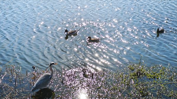 強い冬型の気圧配置で冷え込んでいますが、冬の柔らかな陽射しは、池のほとりの葦を金色に輝かせて、眩く光っている光景は、寒さを忘れて見惚れます。