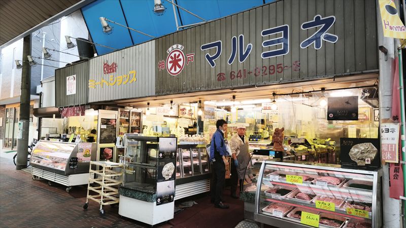 六間道商店街の西側は、昭和レトロな横幅が6間(約10m)と、三宮のセンター街よりも広いかもしれません。高さも2階部分がすっぽり入る巨大な空間です。