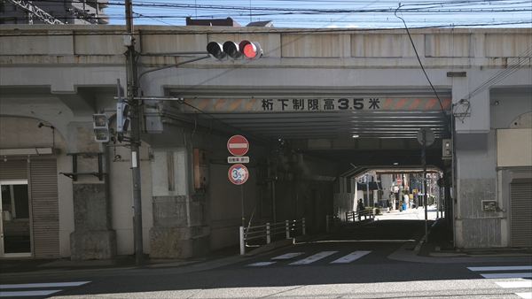 三ノ宮の東側の二宮辺り、阪急の複線とJR神戸線の複々線が並行する高架区間で、高架下の奥行きが まるでトンネルのようです。