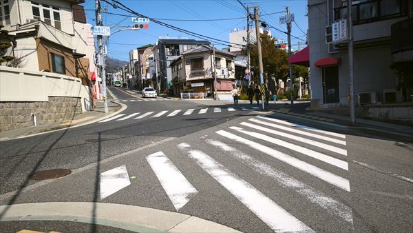 新神戸駅の東側で、旧・市電通りから急な坂で山沿いへ向かって、その後は平坦な東西の道路ですが、労災病院の東・野崎通3丁目の交差点で2系統のバスは直進せず、山側の北に左折して坂を上り、これが山麓線となります。まっすぐ東に直進すると、葺合高校の北、海星女子学院大の南、王子動物園の北を通る野崎線となって、やがて北に向かって山麓線となって、護国神社前を通って、神戸大の南の六甲登山口交差点に至って、2系統のバスはそのまま阪急六甲駅前へ。