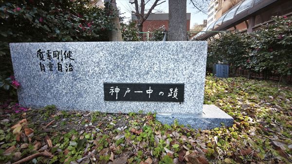 旧神戸一中の蹟、現在の神戸高校の前身は、この新生田川沿いの二宮の旧神戸一中と、現在は県庁になっている神戸第一高女が前身校で、神戸一中時代に現神戸高校に移転しています。
