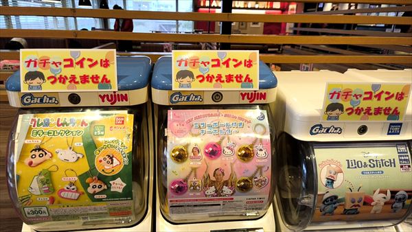 入り口にガチャガチャがあり、家族で来ると子供にねだられるような位置に設置していました。