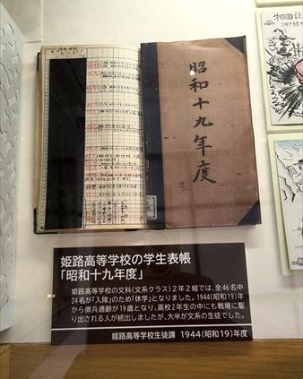 太平洋戦争は、新制神戸大学の発足する前ですので、旧制神戸商大を中心に、旧制姫路高校の資料の展示もありました。伯父が旧制姫路高校だったのですが、年齢を考えると学徒出陣には該当せず、昭和20年の入学で、戦後の新制神戸大学が発足する前に卒業だったようで、この昭和19年度学生表帳には載っていないことが、帰宅後わかりました。