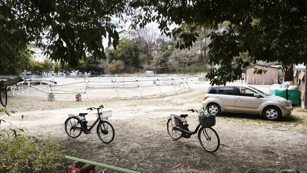 六甲台第2キャンパスの北西の端にある馬場、馬術部は春休みで活動していなかったです。