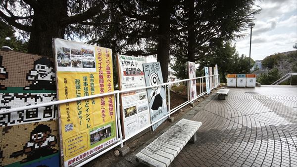 旧・教養部があった鶴甲第1キャンパス、昔のタテカンと違って、クラブ活動のものばかりです。