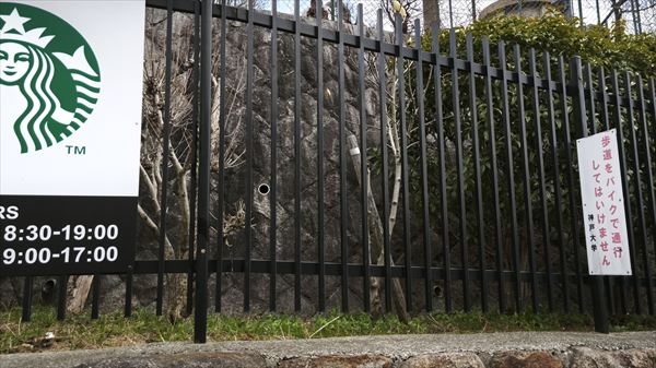 キャンパス横のバス通りの歩道に「歩道をバイクで通行してはいけません 神戸大学」との看板がありました。