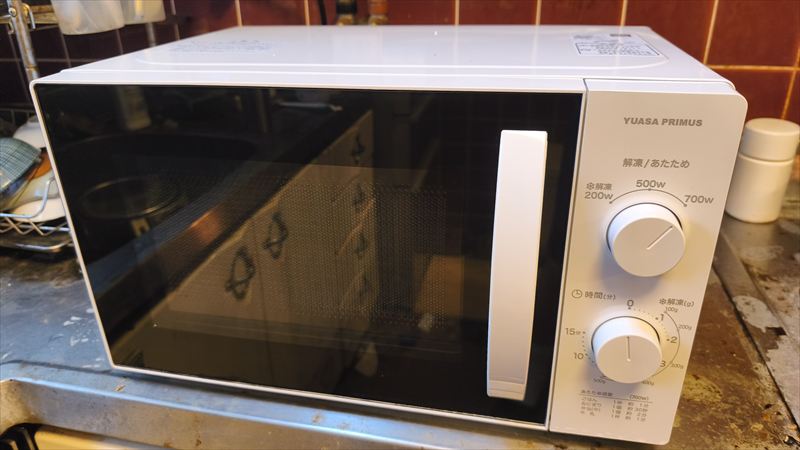 少し前から電子レンジの調子が悪く、庫内のライトが点灯してターンテーブルが廻って、タイマーがチンと鳴っても温まっていないことがあり、接触不良のような気がしています。分解して接点の掃除や接触等の確認をすれば動作するかもしれないとは思いますが、高周波加熱なので、分解して組み立て方が悪くて強い高周波が庫内から漏れても気がつかず、健康被害が怖いので買い替えることにしました。5年か6年なので、ちょっともったいなにですが、電子レンジの単機能で安く買ったもので、特にオーブン機能は使わないので、安いものを探していると、ホームセンターで安価なものがあったので、さっそく購入しました。