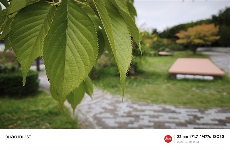 ついでにカメラの試撮をしましたが、今日も曇天で発色性に関してはわかりません。「LEICAの透かし」が出来るようで、撮影データが記録されます。今日はメインカメラの広角レンズだけで撮りました。