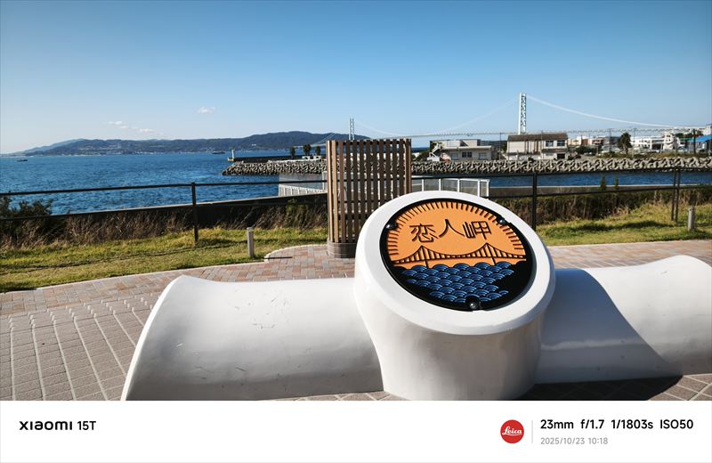 福田川左岸河口の、明石海峡を望む処に昨年設置された恋人岬のモニュメント、秋の陽射しに映えて写りました。