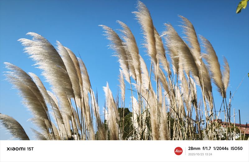 ススキが秋風にたなびいて、背景の青空に映えて綺麗でした。