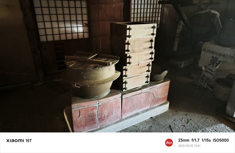 目で見ると、薄暗いを通り越して、良く見えなかった古民家の内部ですが、LEICAのカメラ機能はしっかりと撮影できていました。ISO5000で、シャッタースピードが1/15秒ですが、雰囲気は出ています。