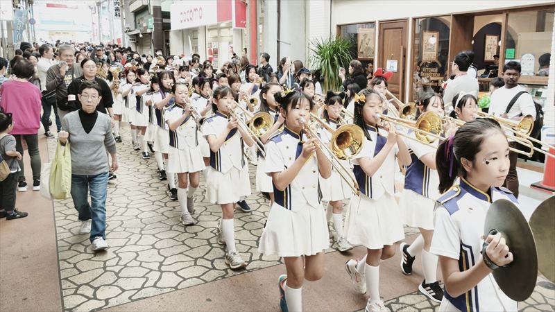 ブラスバンドの音楽が聞こえて、小学生らしきマーチング、どのような団体か、わかりませんでした。