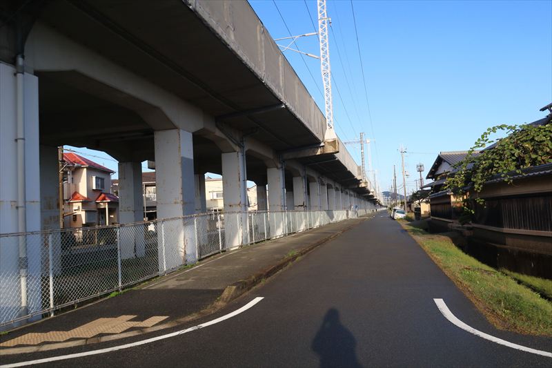 山陽新幹線沿いの北側に、少し幅の広い歩道のような自転車県道が整備されていますが、走りにくいので車道をいつも走っています。もう少し西へ向かうと天川を渡る自転車用の橋(銀輪橋)があり、その向こうが姫路市です。