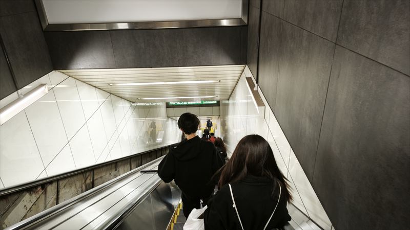行きに文化ホールに立ち寄ったのですが、休日後の火曜でプレイガイドも閉まっていたので、また地下鉄に乗りました。2階建ての駅で東行きは地下1階、そして西行はその下の地下2階なので、エスカレータが長く階段はありません。