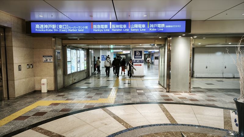 地下鉄のような神戸高速鉄道の「高速神戸駅」の表示、4つの私鉄の連絡のために出来た路線なので、神戸高速を含めて5つの私鉄が関係する駅です。