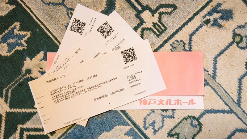 3つの演奏会のチケットを購入しました、11月の中旬から1月の中旬まで、オンライン予約で他に2つの演奏会もチケット予約しており、それ以外に、もう1つの演奏会も行こうかなあ~と思っています。それにチケットなしの演奏会も予定しているので、この2ヶ月ぐらいに7回の演奏会を聴く予定です。