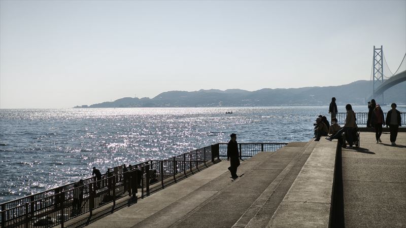 舞子公園では、秋の好日の昼下がりに、長閑に過ごしている人がたくさんいました。